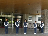 - ~玄関でのお迎え~ ◎きちんと整列、息のあった挨拶◎ ご来場のお客様をまず玄関でお迎え、クラブやバックをお預りします。「お久し振りです」とお声を掛けると「ちょっと忙しくて来れなくて、元気ですか」とお話して下さる会員様には、いつも元気を頂いています。≪毎日の業務ではなく、スタート時間によって決まりますが来場者の第一印象を決める大切な瞬間です≫